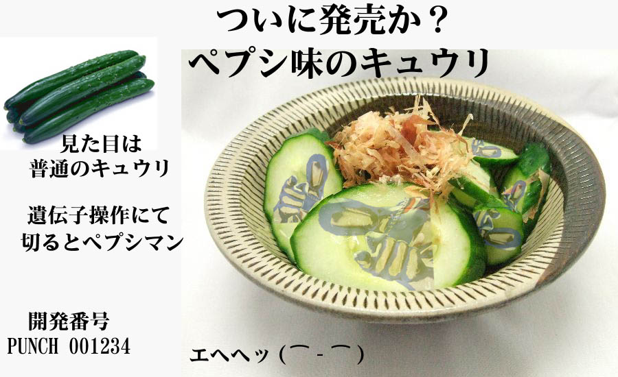動き方が非常に気持ち悪いです。にょろにょろくねくねと・・・ あ、ホワイトスネイクは大好きですよ(^^) 「白人の・・・」では無いですが。(連呼するとブログによろしくないので点で処理) ペプシマン懐かしいですね( ̄∇ ̄) しっかり奥の方のキュウリまでペプシマンが中にいるという(笑 ペプシ味のキュウリ・・・炭酸がダメなので食べられませんが 夏の暑い時期には なかなか売れるのではないかと踏んでます(笑 |