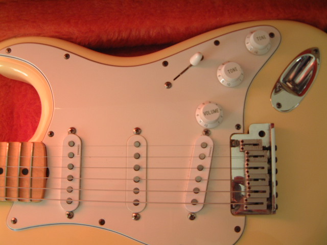 昨日に引き続きで・・・。 音を変えるのは、何もエフェクターやアンプだけではありません。 ギター側のボリュームの上げ下げによって、音が変わります。 「音量がだろ!」 はい、それもあります。 しかし、最初から歪んだ状態の場合は、歪み具合も変わります。 特にシングルコイル ストラトの場合は、ハムのギターより判りやすく。 通常、アンプやエフェクターで歪んだ状態で、弾いてますが で曲によっては、ソロやサビは歪んだ音でリフやアルペジオなどは エフェクターのペダル踏むアンプを切替とか知ってる人は飛ばしてくださいね。 その場合、ギター側のボリュームを3位に絞ってあげます。 そうすると、完全なクリーンとは行きませんが、クリーン音源となります。 7位に絞ってあげれば、少し歪が抑えられます。 ソロになったら、ボリューム全開で、完全に歪んだ音へ。 私の場合、あまりエフェとか踏んだりしない(面倒) アンプの切替しない(アンプの切替スイッチ用のペダルがない) そんな訳で、よく使います。少し知ってると、使えると思います。 ボリューム奏法(バイオリン)なんてありますが、 読むより、耳の方が早いでしょうから音でご確認下さい。