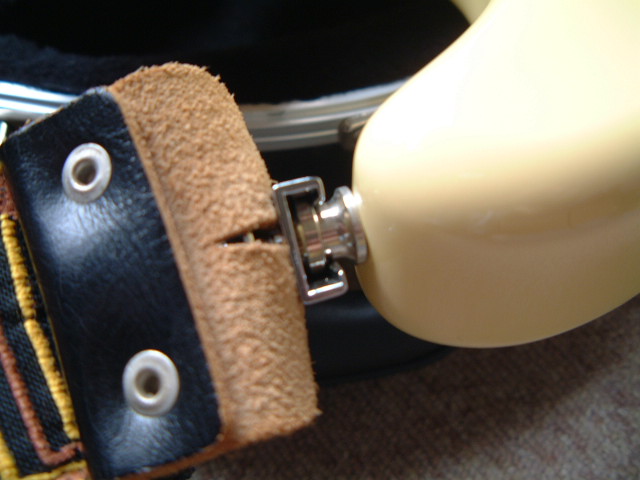 FENDER USA YMには付いてます。 大抵、このモデルを買うと最初から 付属してたりします。ディマジオのが。 あるんだから付けてますよ。(⌒‐⌒) イングヴェイが、これを使用してるから付属で付いてるんでしょうね。 でも本家のは、確かダルメシアン柄だったような。しかも高いし7000円位かな。 普通のディマジオのだから、3000円位だと思います。 利点は、ボディに先の部分が固定されてるのでブン回してもOK。 切れるか、ボディに固定してるネジが飛ばない限りは安心。 難点は、1台に1つストラップが必要。だって先の部分だけ売ってないから(^_^;) 私は肩に爆弾があるので、このストラップだと戦闘力0になる。 擦れると、凄く不快、気持ち悪い。 この間の黒王号は、普通のFENDERのストラップだったんだけど 久しぶりに使ったら、肩にかかる不快指数が極端に低いらしい。 黒王号は普通のストラップピンなんだけど、他のギターがロックピンなんで 交換しとくかと。シャーラー製の奴。あんまり踏ん切りつかなかったんだけどね。 以前、ロックピンを過信してゴトって落ちたし。YAMAHA SG1000が。 後ろだったのと、ネックを握ってたから、無事だったんだけどね(^_^;) ストラップ側の金具 ストラップにネジで固定。 締め付けが重要&たまに確認。 結構、本気で締めとかないと緩む。 でも本気で締めるにしても適度にしないと 金具が壊れる。 必ず上に口が来るようにね。 麻呂さんもゴトってやったらしいし。 ちなみにギターはST72YM JAPAN製。 ピンが付いてないギターが後2台あるんだよな。 アコギとミニストラト。 それ様に、ストラップ買ってくるか・・・。殆ど弾かないから今度で・・・。(^_^;) だってストラップピンの方が高いし(笑) じゃストラップの事を書いたから、立って弾いてみますか(⌒‐⌒) 戦闘力0になる、クリップロック式で。だから、USA YM。 1弦が008だから、21Fの1音半チョーキングはOK(^_^)v らくちんFLVで動画にて いつもの音で途中まで・・・。 ※嘘を書いちゃいました。いつもの音より少しODのGAIN少し上げてまふ m(__)m 何故途中まで、見ればわかるはず・・・。 HIGHEST 途中まで動画 (⌒‐⌒) ↑をクリックして下さいね。 貼り付けだと、ブログの表示が極端に遅くなる場合があるから。 別ウインドウで表示されない場合は、ブラウザを全部閉じた上で再度ご覧下さい。 |