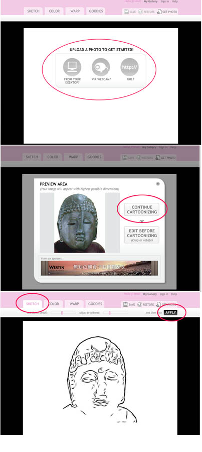 上の真ん中らへん CARTOONIZERをクリック UPLOADなんちゃらって出るからPCとかURL指定とかでUPする んでCONTINUEをクリック 上のSKETCH選んでAPPLYクリックでOK スライドバーで調整して試してちょ 色も自動で塗ってくれるよカラーとかって所から 画像で一連の流れを どうですか? わかりました? オフ会で今度から顔写真取ってこようと思う今日この頃なのであった(⌒‐⌒) ここってどんなブログ? お笑い系ギターブログですが何か( ̄^ ̄) 夜に渡したけど、写真もね 厚くん 誕生日おめでとう(⌒‐⌒) プレゼント作ったからあとでね(⌒‐⌒) PR 																													 |