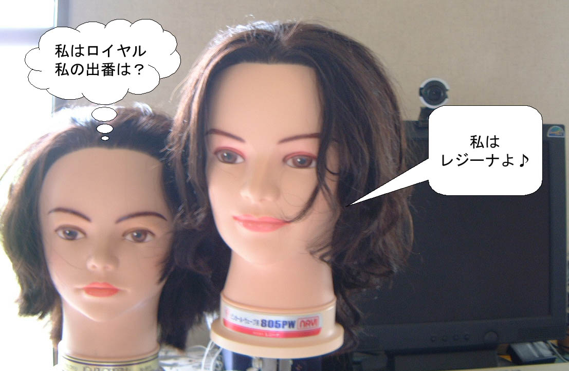 レジーナさん、髪が伸びるでしょ・・・・。 うめずかずおの登場人物のようなお顔が怖い・・・・・。 |