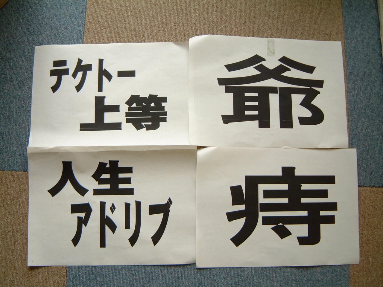 出演するのを遠慮しようかと思ってたのですよww これマジでww 沢山の人が出たがってるだろうからw 人が足りない場合はって事で話だけしてw 今回、沢山のパートがあって少し足りないって事で急遽参戦(⌒‐⌒) じゃ、どこのパートをやるかなって事だったんだけど、のっちさん salt40さんも 参加するって事で、じゃ3人でネタしようかって話になったのですよww 総監督である、Supaさんにも相談して、パートの希望者がいない事も確認。 編集の事や、時間的な事、ネタの構成を伝え許可ももらってw ベースでぬてんさんも参加してるって事で、演技指導もして、結局4人でネタw 完成まで、黙ってたわけよw 知ってるのは5人くらいでww で、どうでした? 笑った?www 今回もsalt40さんにお笑いを全部持っていかれた感がありありですけどw salt40さん 遠藤じゃないですからねww 私も痔じゃないですよww 痔 遠藤=THE END しょうもない、おっさんギャグですからww 今回こんな物を使用させてもらいました 計画もしてて、みんなでジャージって話が のっちさん ジャージで3年54組入れてあるから 上の子のジャージ借りてこれを貼ったのww ラストのネタ動画には顔出しでw PCで見てるのはのっちさんも私も JKかるあの動画ですww 打ち合わせしてw そんな感じでした。最高ですね。(⌒‐⌒) 第一弾、第二弾 参加できて光栄です(o⌒‐⌒o)ゞ エヘヘ おお、伝説の第一弾がここにと白々しく貼ってみるwww 全てはCanonRockに出会ってから始まったんですよね~―γ( ̄ο ̄)oΟ◯ ブログ Stickam IB オフ会と これからもみんなと楽しい時を過ごしたいなと思っております(⌒‐⌒) PR |