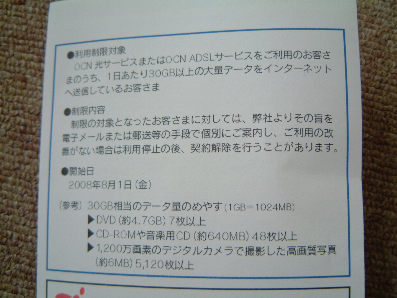 まあ、みなさんには関係がないかと思いますが 私の契約してるプロパイダーがOCNなんですが、そこからDMが来たんです。 これね↓ 一瞬、ゲッ 毎日 中継してるから? とか思ったんですが 8/1~だそうなw